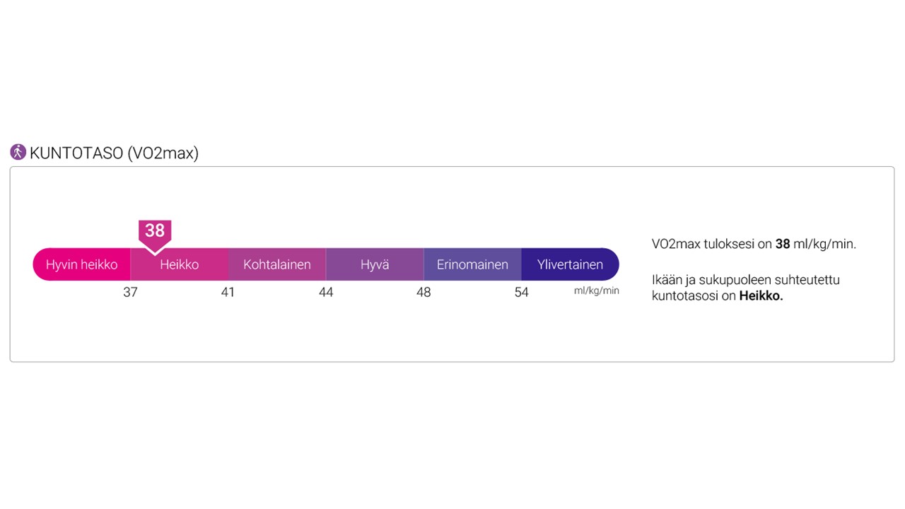 Kunnon kehittäminen on olennainen osa kokonaisvaltaista hyvinvointia, sillä hyvä kestävyyskunto parantaa tutkitusti unen laatua ja stressinhallintaa sekä tuottaa monipuolisia terveyshyötyjä ja lisää laadukkaita elinvuosia. Kestävyyskunnon selvittäminen on aiemmin vaatinut laboratoriotason olosuhteita tai maksimaalista suoritusta, mutta nyt voit mitata oman kuntotasosi helposti osana Hyvinvointianalyysia vain puolen tunnin reippaasta kävelylenkistä.
