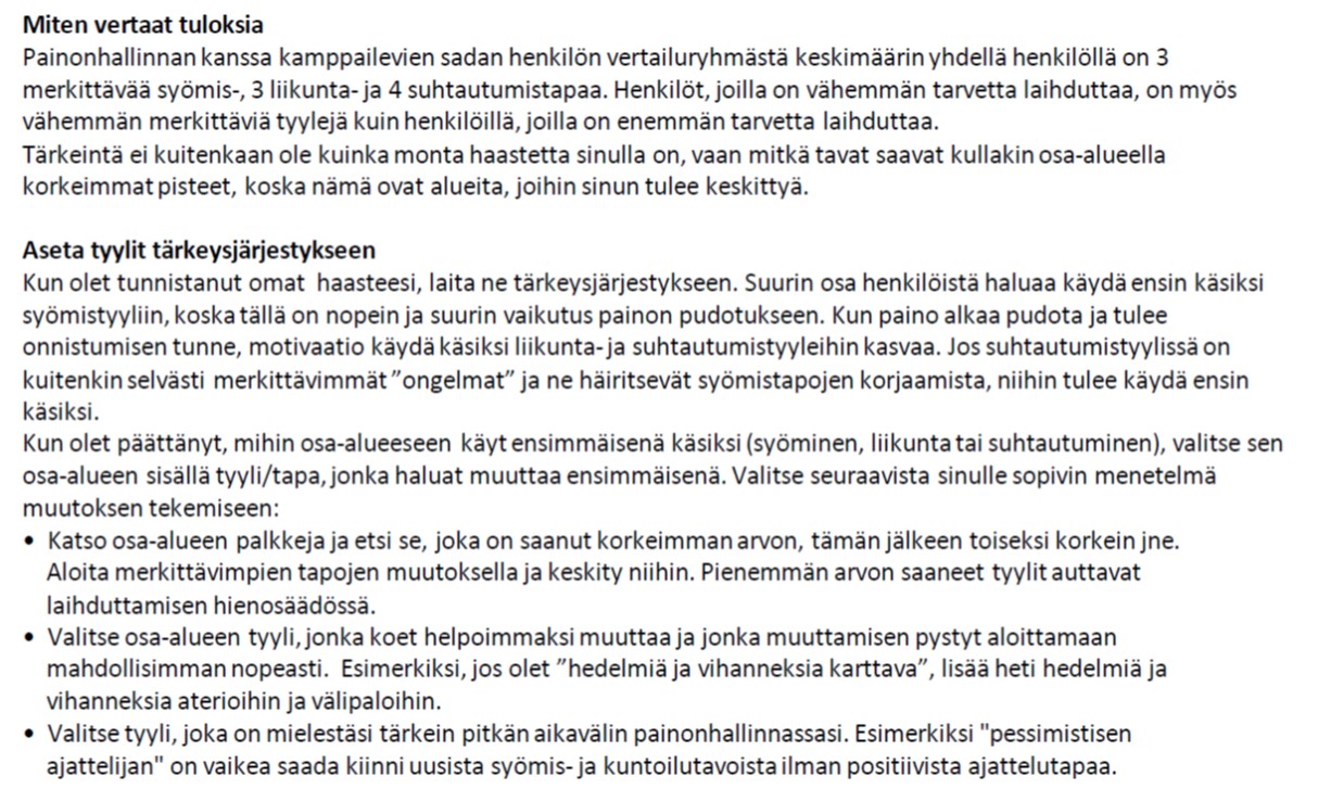 ”Painonhallinta-profiili on hyvä, koska joutuu (viimeistään siinä kohtaa) todella miettiä omia tottumuksiaan ja tapojaan.”