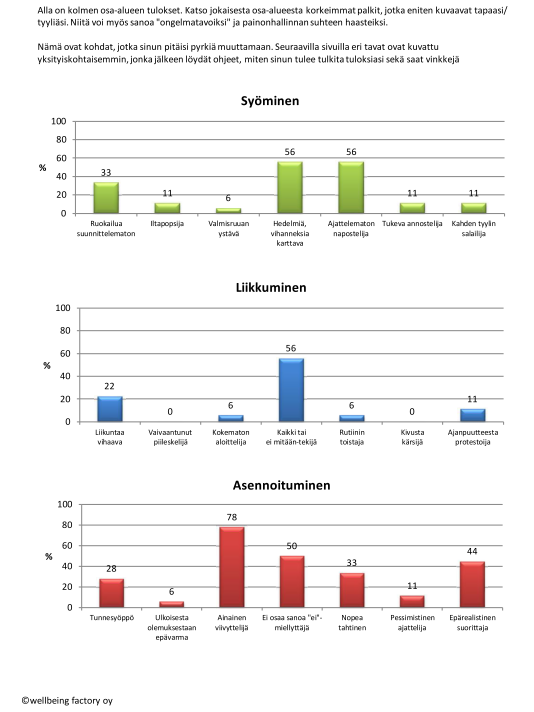 Profiili kartoittaa sinun tämän hetkisen suhtautumisen ja käyttäytymisen kolmella eri osa-alueella: